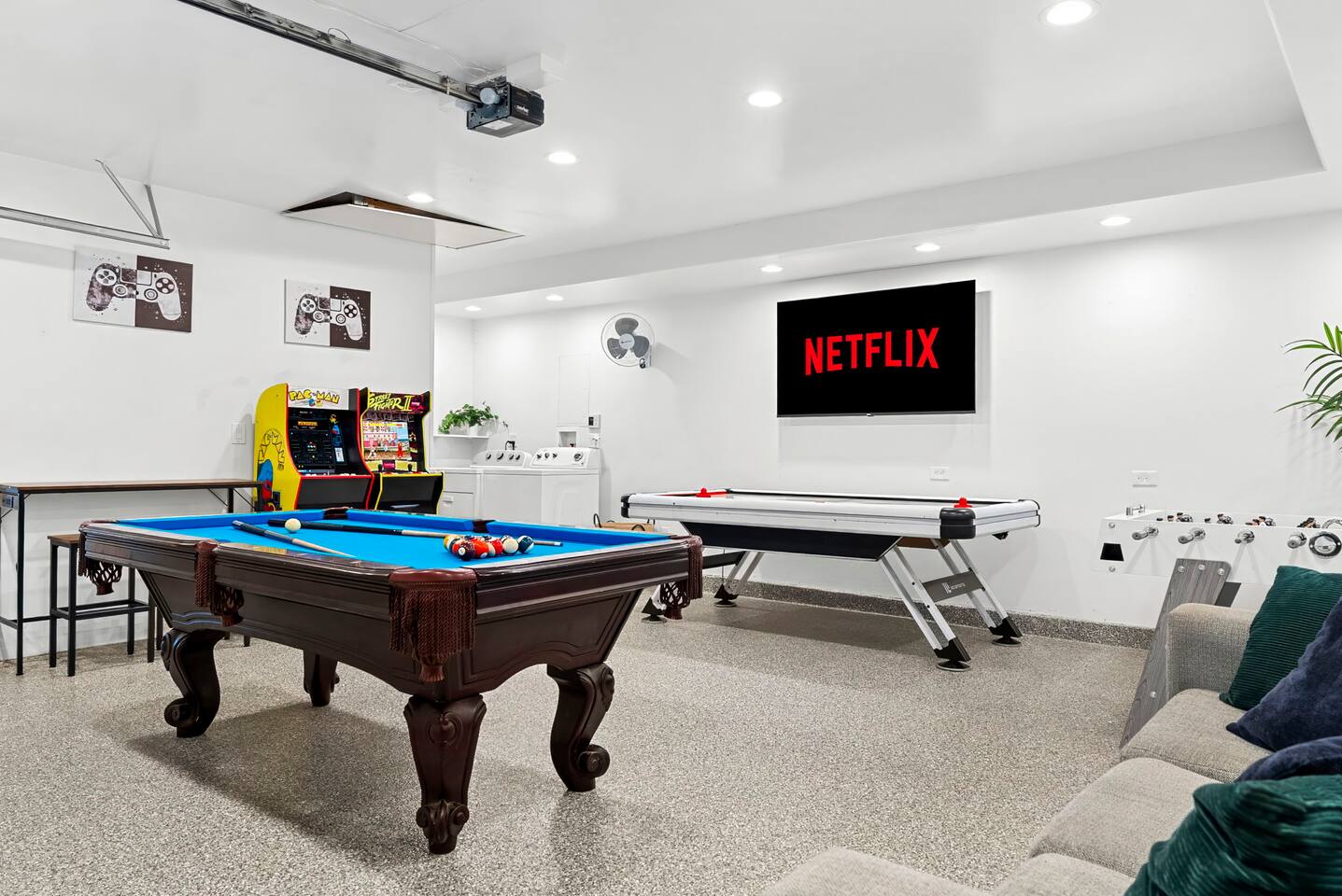 Just 10–15 minutes from Disneyland and Knott’s Berry Farm, this spacious two-story 4-bed, 2-bath retreat is perfect for comfort and fun. Enjoy vaulted ceilings, natural light, and space for all with 2 king beds, 1 queen, a bunk bed, and a twin. Unwind after a day of adventure with pool, arcades, or simply relax in the inviting living areas. Whether it’s a family vacation or group trip, our home offers the ideal mix of comfort, convenience, and entertainment.