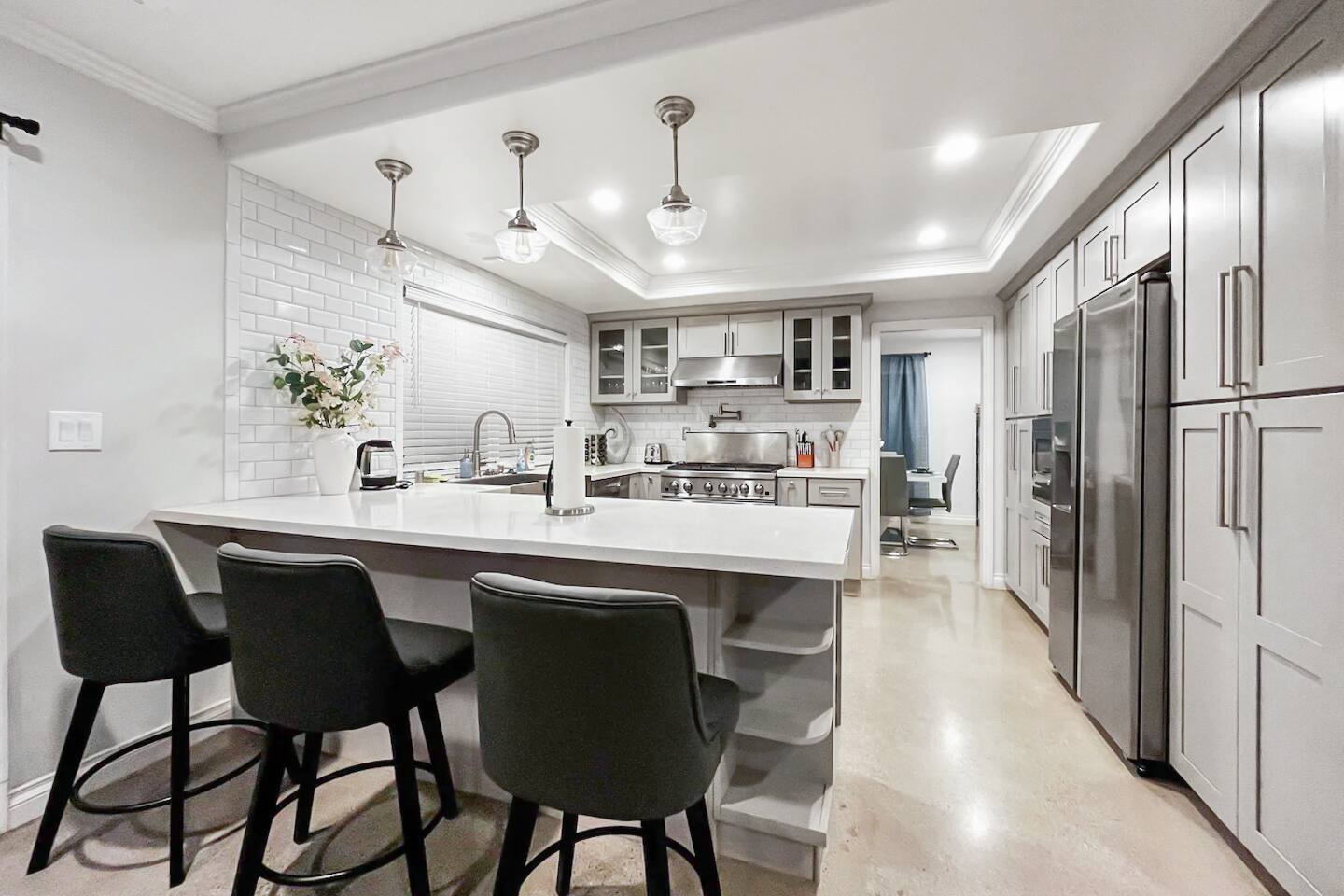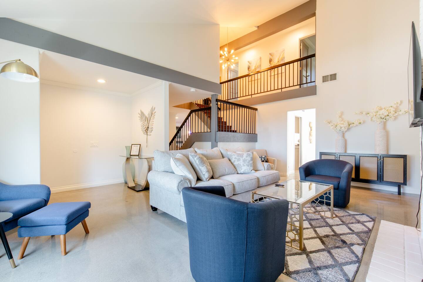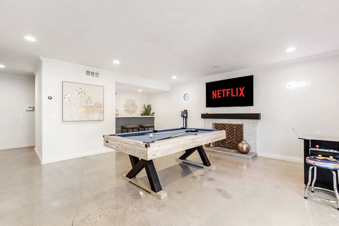 You will have exclusive access to the entire private home which includes: GAME ROOM: 🎮 Game room with pool table and arcade machine! 🎮 Board games + card games BEDROOMS (Sleeps 10. All bedrooms on the 2nd floor): 🛏️ Bedroom 1: Spacious master bedroom king bed with TV, attached bathroom, dresser, walk-in closet, balcony with 2 lawn chairs, and a pack & play for your little one! 🛏️ Bedroom 2: Queen bed 🛏️ Bedroom 3: Queen bed 🛏️ Bedroom 4: Twin bed and twin XL over queen bunk bed BATHROOMS: 🚿 Full Bathroom 1 - Large standing shower (in master bedroom) 🚿 Full Bathroom 2 - Standing shower 🚿 Half bathroom 🚿 Towels, shampoo, conditioner, and body wash provided 🚿 Hair dryer LIVING ROOM: 🛋️ Living room with high ceiling 🛋️ Full-body massage chair 🛋️ High-speed Wi-Fi Internet 🛋️ 60" Smart Roku TV 🛋️ Couch and accent chairs seats 7 🛋️ Electric Fireplace KITCHEN/DINING AREA/COFFEE BAR 🍴 Fully equipped kitchen with stainless steel appliances 🍴 Pots & pans, coffee maker, and kettle 🍴 Coffee, cream, and sugar 🍴 6-person dining table OUTDOOR AREA: 🌳 Backyard has beautiful string lights 🌳 Large shaded patio area with lounge seating 🌳 8-person outdoor dining table 🌳 Propane grill and grilling utensils OTHER AMENITIES 👕 In-unit washer & dryer ❄️ Central air-conditioning 🔥 Central heat PARKING: 🅿️ 2 spots in a secure garage, 4 spots on the driveway, and plenty of free street parking overnight NEARBY ATTRACTION 📍 Tesla Supercharger - 0.2 mile 📍 Tokyo Central Market - 0.2 mile 📍 Stater Bros Market - 1 mile 📍 Tierra Mia Coffee - 1 mile 📍 Walmart, Costco, 99 Ranch Market - 5 miles 📍 Los Angeles Convention Center - 24 miles 📍 Disneyland - 30 miles 📍 Orange County Zoo - 30 miles 📍 Hollywood - 30 miles 📍 Los Angeles Zoo - 30 miles 📍 Los Angeles Airport - 38 miles 📍 Beaches - ~40 miles