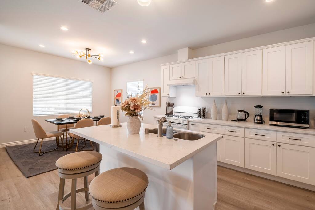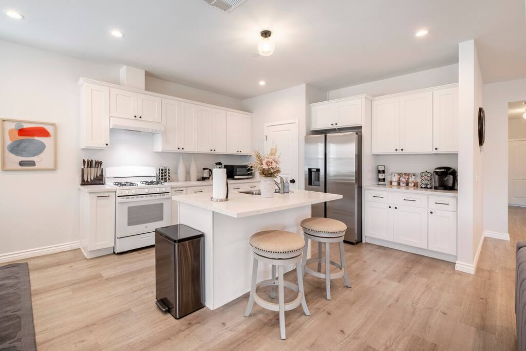 Perfect for families, travelers, and groups, our home offers a blend of luxury and functionality. Each bedroom is designed for comfort, while the outdoor patio provides a tranquil setting for relaxation or socializing. Sleeping arrangements: 🛌 Master Bedroom: King size bed with luxurious en-suite 🛌 Bedroom 1: Queen bed, stylish and comfortable 🛌 Bedroom 2: Queen-over-queen bunk bed, perfect for kids or extra guests 🛌 Bedroom 3: Queen bed, elegantly appointed for a restful sleep Immerse yourself in comfort and style at our Upland retreat, ideal for both lively gatherings and peaceful relaxation. Our favorite features at Upland Contemporary Haven: ✅ Expansive living area with luxurious grey sofas and large flat-screen TV ✅ Infinity game table for unlimited fun playing arcade and board games ✅ Gourmet kitchen with efficient appliances and quartz countertops ✅ Elegant dining area that seats six ✅ Master suite with a plush king bed and a spa-like en-suite bathroom ✅ Two additional bedrooms with Queen size beds. ✅ Unique queen-size bunk beds in a stylishly designed room ✅ Serene outdoor patio with comfortable lounge furniture and a state-of-the-art BBQ grill The fully-stocked kitchen boasts: 🍴 Spacious refrigerator 🍴 Modern gas stove and oven 🍴 Keurig coffee machine for a quick caffeine fix 🍴 Full range of cookware, bakeware, and utensils 🍴 Blender for your smoothies or mixed drinks 🍴 Wine glasses and an easy-to-use wine opener Laundry: 👕 Laundry closet: washer & dryer Parking: 🅿️ 2 spots in a secure garage and 4 spots on the driveway NEARBY ATTRACTION 📍 Walking/Biking Trail - 0.1 mile 📍 Tesla Supercharger - 0.5 mile 📍 In-N-Out Burger - 1 mile 📍 Claremont McKenna College - 1 mile 📍 Target, Walmart, Costco - 1 mile 📍 Mt Baldy - 11 miles 📍 Ontario Airport - 5 miles 📍 Ontario Convention Center - 5 miles 📍 Raging Waters Los Angeles - 10 miles 📍 Disneyland - 30 miles 📍 Orange County Zoo - 30 miles 📍 Hollywood - 40 miles 📍 Los Angeles Zoo - 40 miles 📍 Beaches - ~50 miles